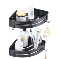 Estantes de Esquina de Aluminio Adhesivo Negro Mate para Cocina Estante de Ducha Esquinero de Almacenamiento Montado en Pared Autoadhesivo Doble para Baño