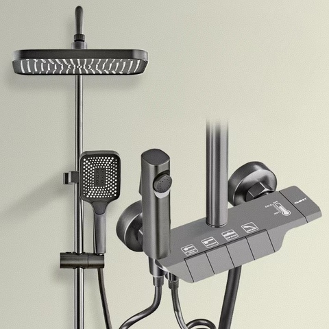 Pistool Grijs Digitaal Display Intelligente Douchekop Compleet Onder Druk Hygiënische Omstandigheden Bad Douchekranen Doucheset Soft Jet